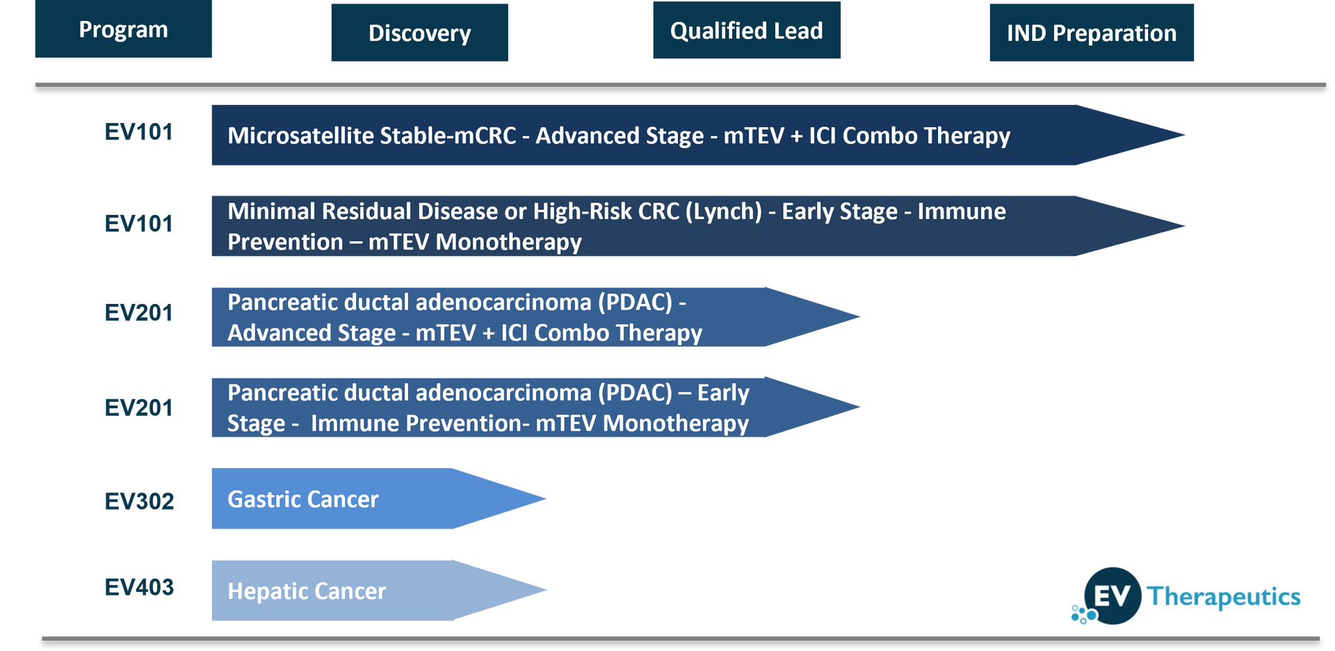 Imagine completing a cancer treatment cycle but still exhibiting minimal residual disease (MRD). This is a mentally debilitating experience often too common in cancer patients. EV Therapeutics is also developing a revolutionary new prophylactic (preventative) cancer vaccine based on our modified tumor-derived extracellular vesicles (mTEVs) platform that helps strengthen the patient's immune system to the level where cancer cells are kept in check and can no longer grow nor metastasize (i.e. spread to other organs and tissues). This innovative therapy may help to alleviate the fear and anxiety in the minds of millions of cancer survivors suffering with residual cancers after the initial surgical tumor resection is long forgotten.